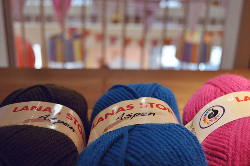 Para estos talleres Lanas Stop ha colaborado cediendo materiales como agujas de ganchillo y ovillos de lana como los que podéis ver en las fotos.
